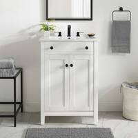 To buy this product from wayfair, click here. You can create a calming aesthetic in your home restroom by purchasing a stylish. This airy white vanity that measures just over 24 inches wide has a bottom shelf and doors with mirror detailing.